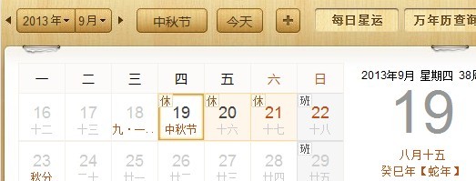 2013年中秋節放假通知