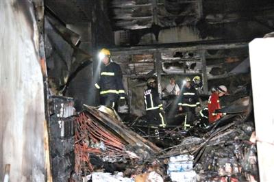 火災(zāi)撲滅后,相關(guān)人員勘查現(xiàn)場(chǎng)