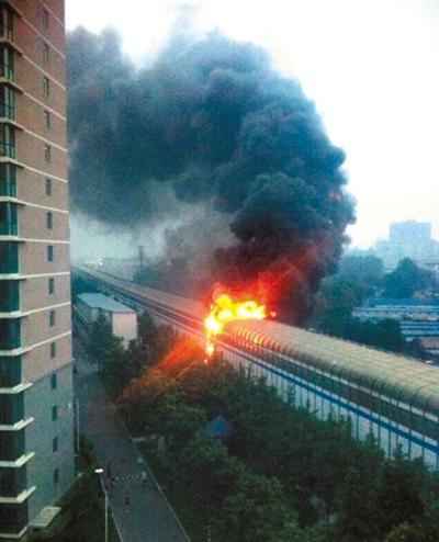 北京地鐵13號(hào)線聲屏障騰起數(shù)米大火 無人員傷亡(圖)