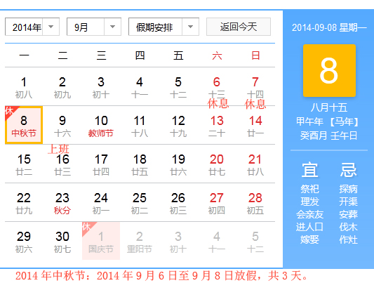2014年中秋節在即,為了便于提前安排好工作和生活,現根據國務院辦公廳通知精神及公司的福利政策,將中秋節期間的放假安排通知如下: